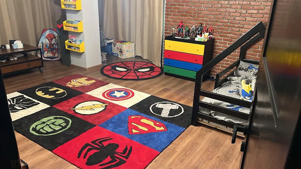 Transform your child's room into a world of action-packed adventures with our Marvel Carpet. This rug features nine of your child's favorite superheroes—Superman, Hulk, Black Panther, Thor, Flash, Captain America, Batman, Spider-Man, and Iron Man. Each hero is brought to life with vibrant design, creating a dynamic and inspiring space for play.